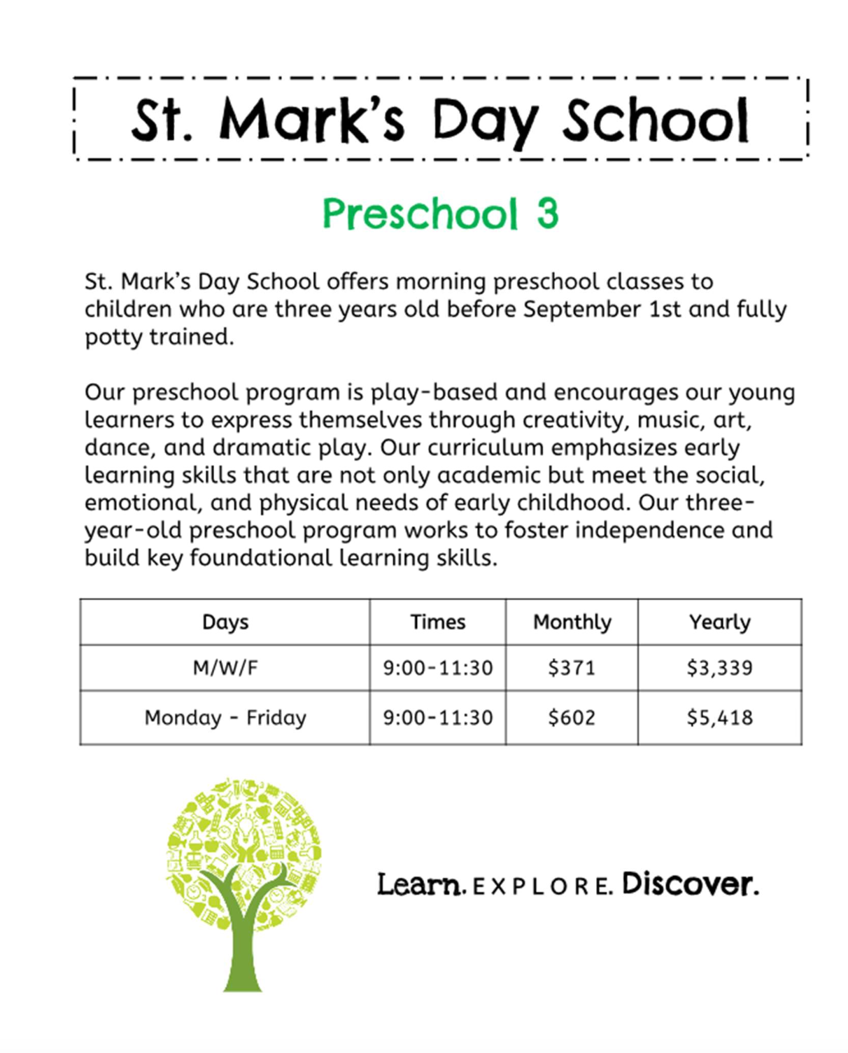 The pre-Kindergarten program at St. Mark’s is designed to support
